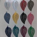 Estampe filigrane feuille jaune en métal. Dimensions : 52x28mm - A l'unité ou en lot de 10 pièces