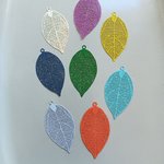 Estampe filigrane, feuille rose, en métal. Dimensions : 49x26mm - A l'unité ou en lot de 10 pièces