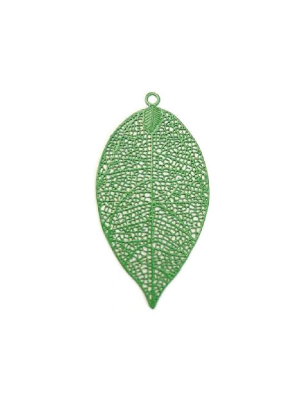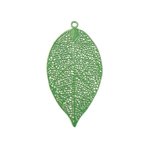 Estampe filigrane, feuille verte, en métal. Dimensions : 49x26mm - A l'unité ou en lot de 10 pièces