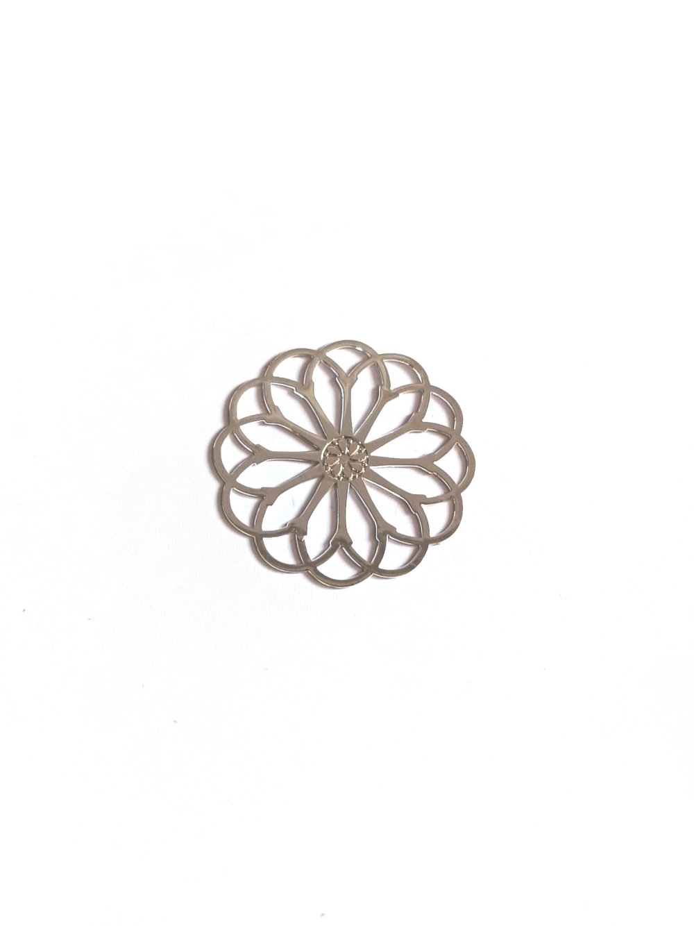Estampe filigrane fleur argentée en métal. Dimensions : 28mm - A l'unité ou en lot de 10 pièces