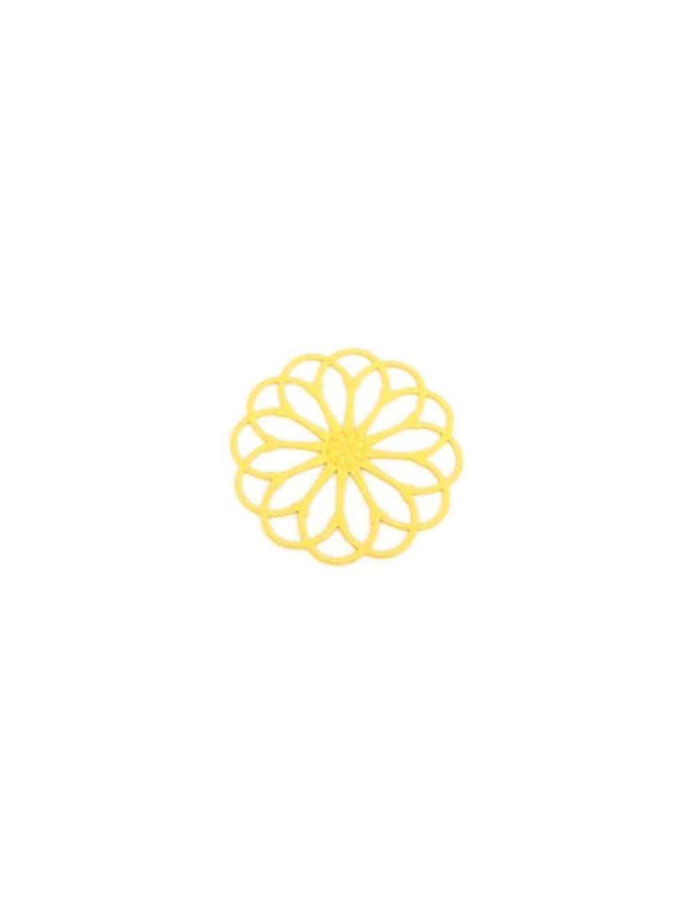Estampe filigrane fleur jaune en métal. Dimensions : 28mm - A l'unité ou en lot de 10 pièces
