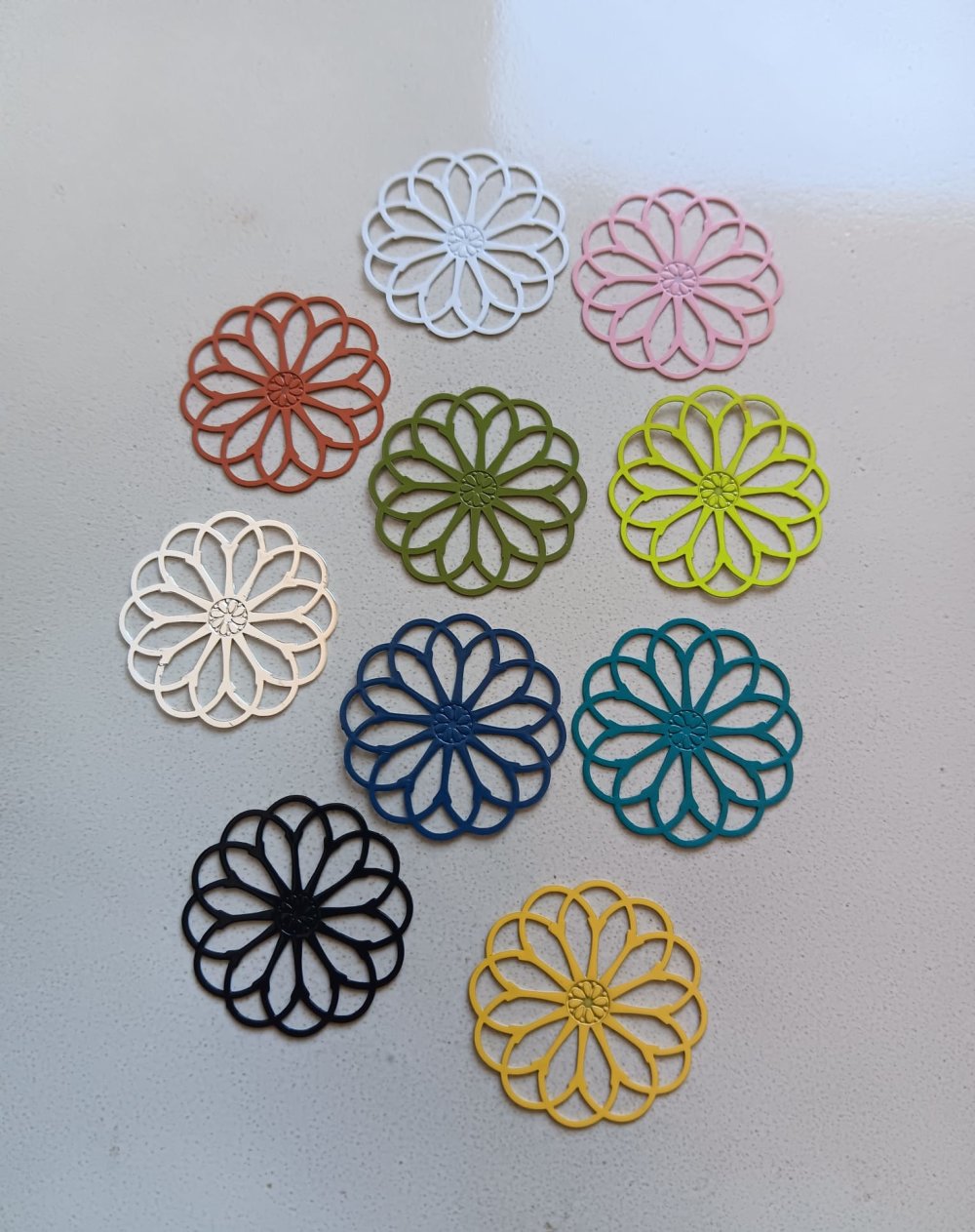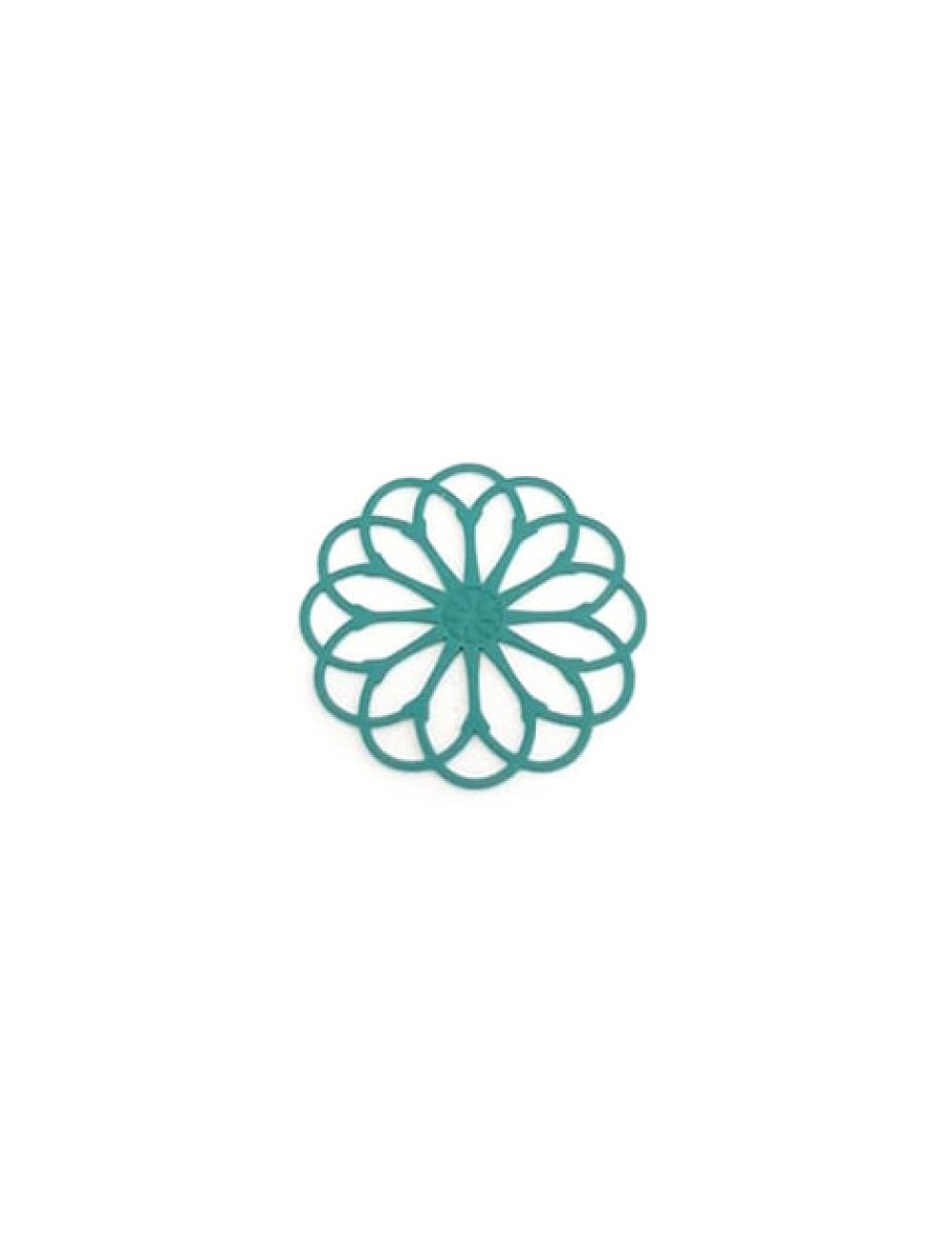 Estampe filigrane fleur verte en métal. Dimensions : 28mm - A l'unité ou en lot de 10 pièces