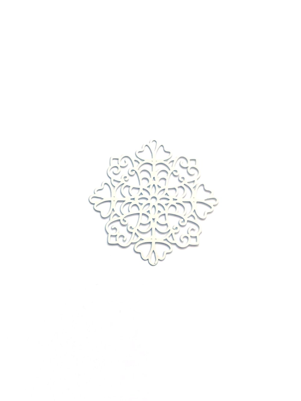 Estampe filigrane flocon de neige blanche en métal. Dimensions : 38x38mm - A l'unité ou en lot de 10 pièces