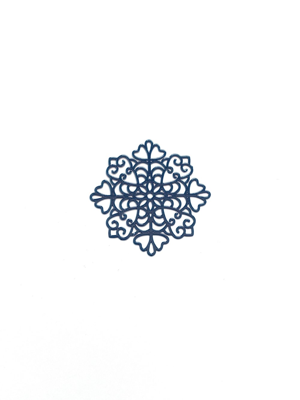 Estampe filigrane flocon de neige bleu marine en métal. Dimensions : 38mm - A l'unité ou en lot de 10 pièces