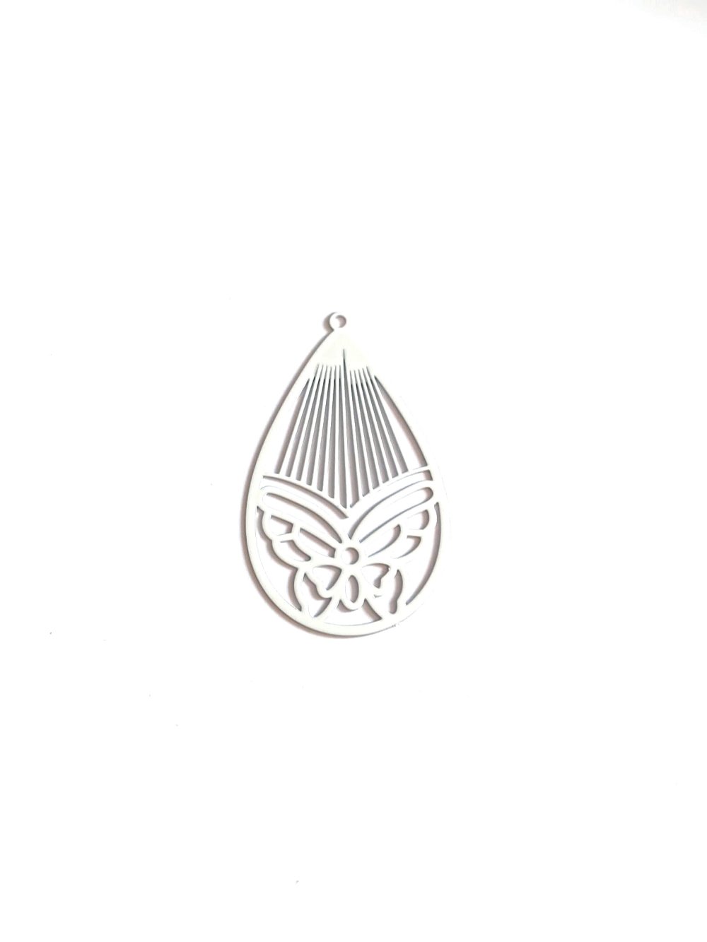 Estampe filigrane goutte blanche en métal. Dimensions : 42x26mm - A l'unité ou en lot de 10 pièces