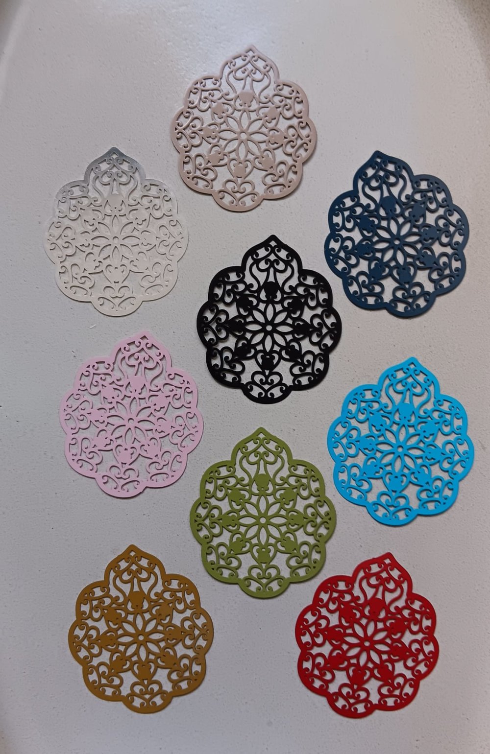 Apportez une touche élégante et aérienne à vos créations avec cette estampe filigrane goutte bleu marine de 50x43 mm. Son design ajouré et raffiné sublimera vos boucles d’oreilles, pendentifs et accessoires décoratifs DIY. Facile à intégrer grâce à son œillet, cette estampe est idéale pour réaliser des bijoux uniques et sophistiqués