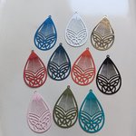 Estampe filigrane goutte noire en métal. Dimensions : 42x26mm - A l'unité ou en lot de 10 pièces