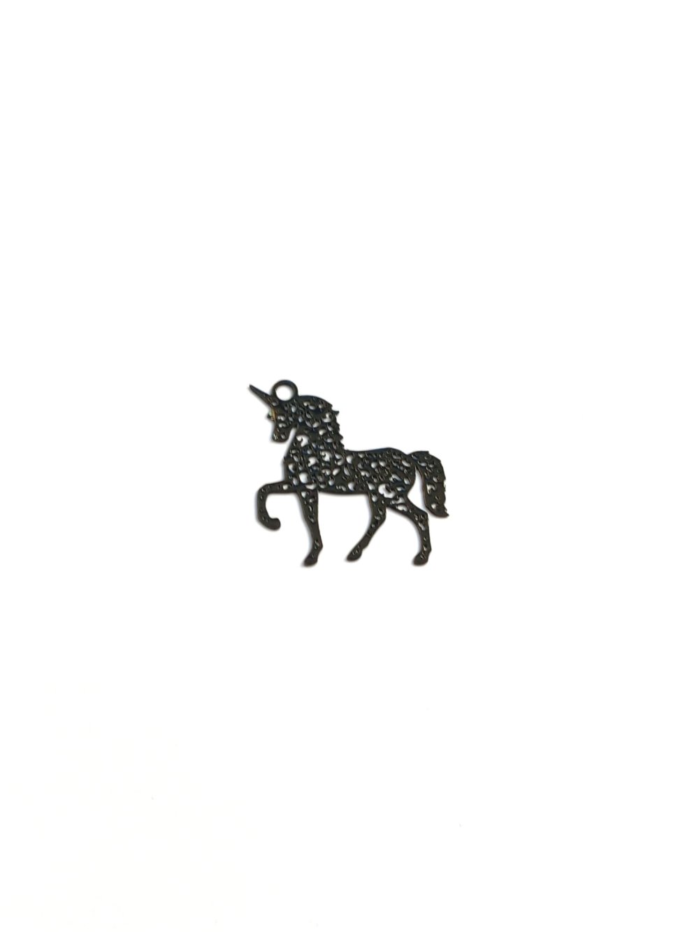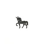 Estampe filigrane licorne noire en métal. Dimensions : 21x23mm