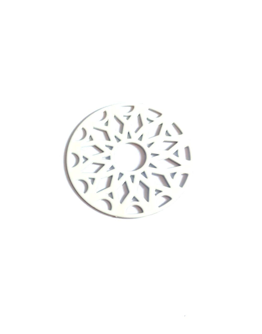 Estampe filigrane, rond géométrique, en métal blanc. Dimensions : 33mm - A l'unité ou en lot de 10 pièces