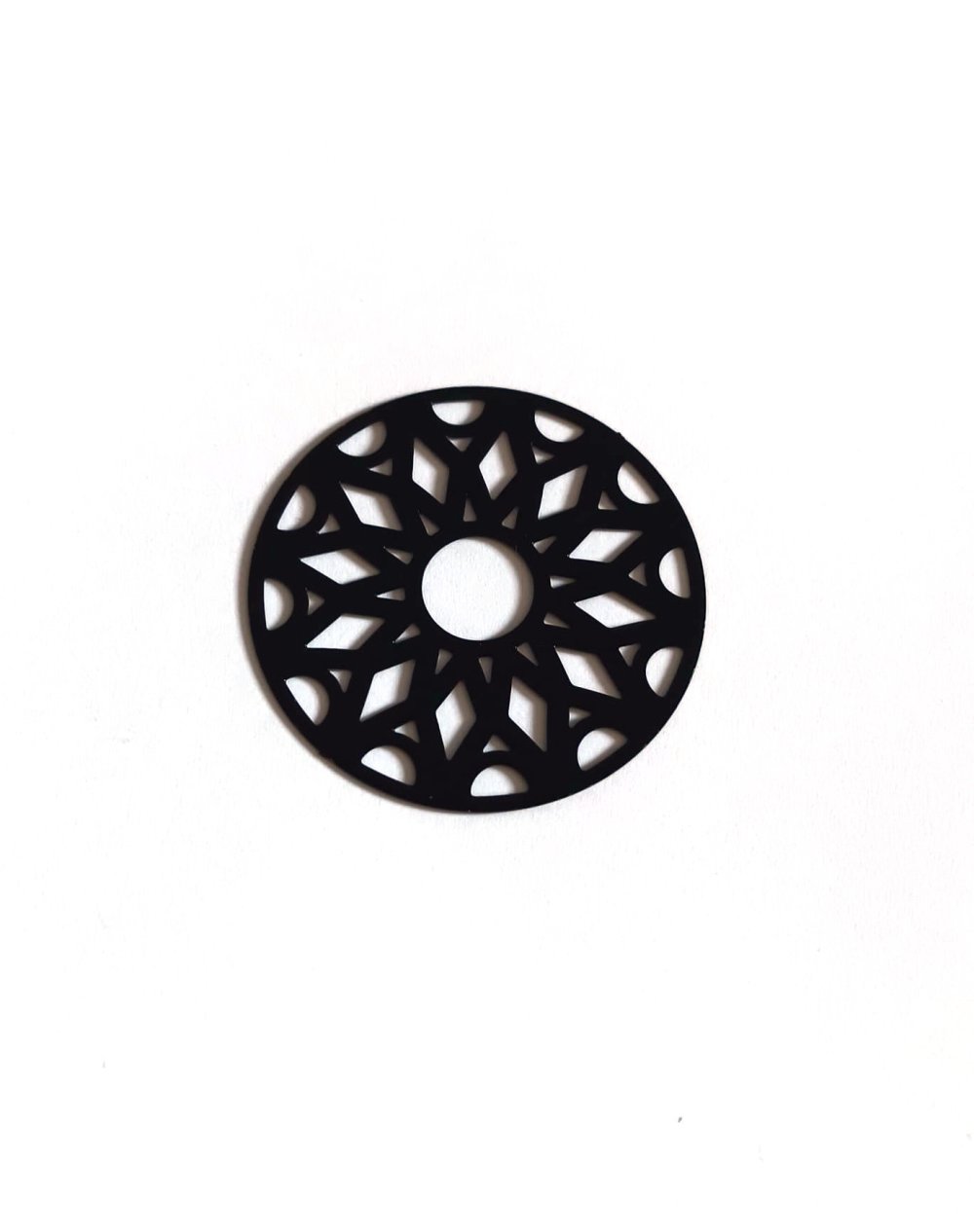 Estampe filigrane, rond géométrique, en métal noir. Dimensions : 33mm - A l'unité ou en lot de 10 pièces