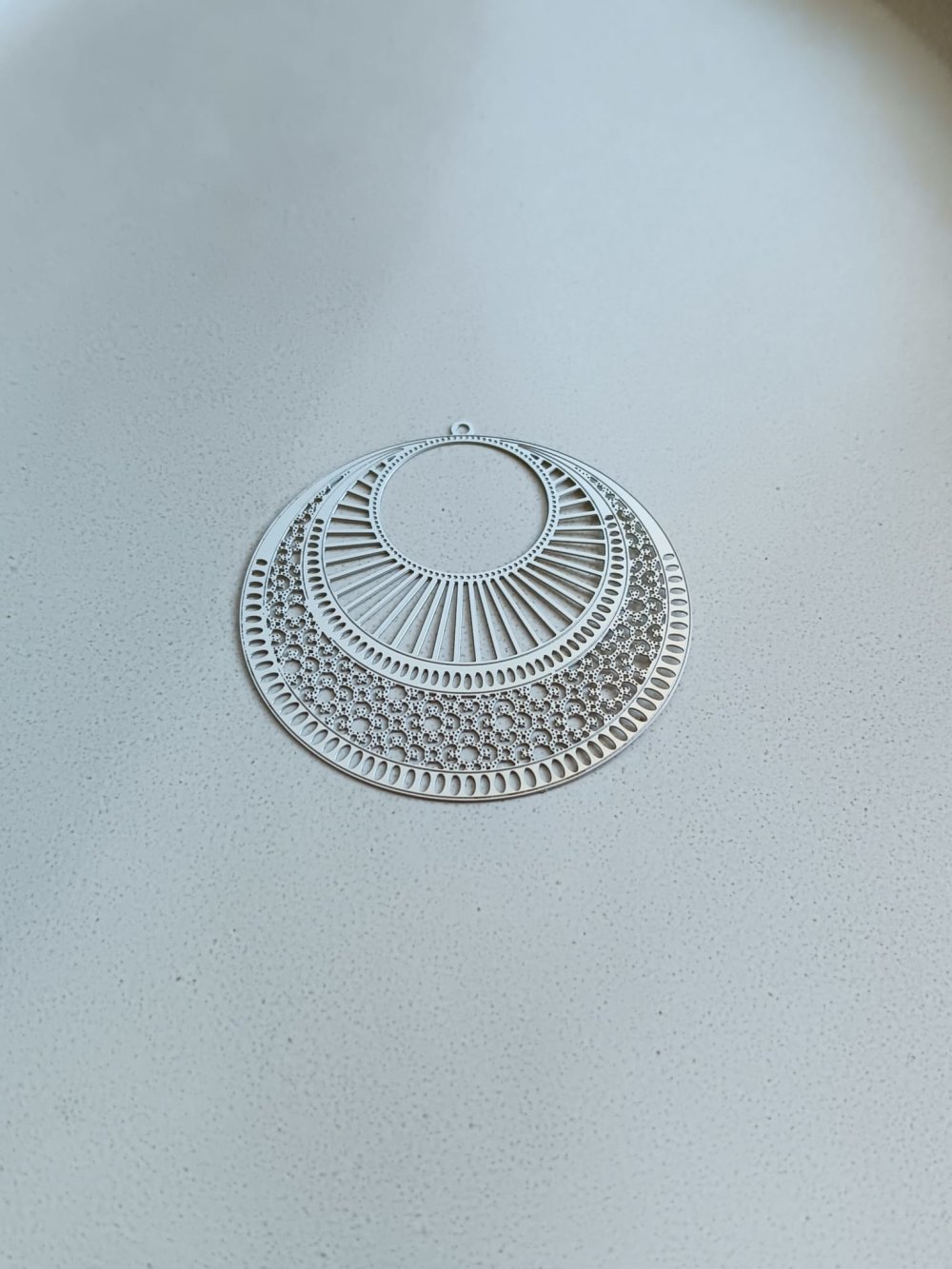 Apportez légèreté, élégance et originalité à vos créations avec cette grande estampe ronde en acier inoxydable argenté. Son motif floral finement ajouré évoque une mandala délicate, parfaite pour des bijoux aériens et poétiques. Avec ses 47 mm de diamètre, elle devient le centre de toutes les attentions dans un collier, une paire de boucles ou même un accessoire de sac.Idéale pour les créatrices de bijoux DIY à la recherche d’un apprêt à la fois original et résistant.