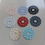Estampe filigrane ronde, motif géométrique, turquoise, en métal. Dimensions : 33mm - A l'unité ou en lot de 10 pièces