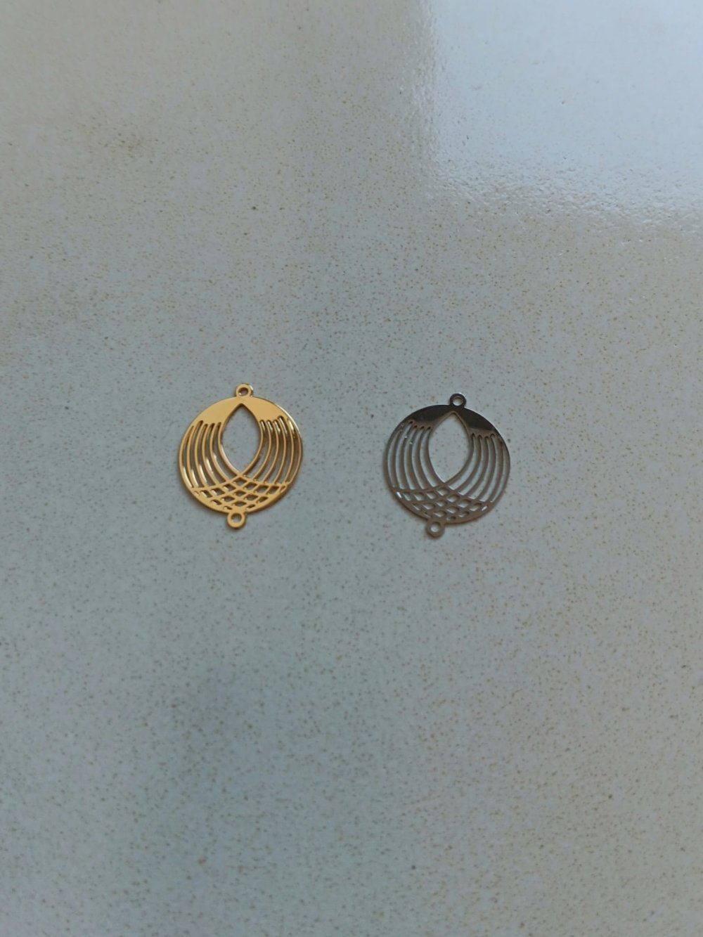 Estampe filigrane ronde intercalaire argentée en métal. Dimensions : 19x15mm - A l'unité ou en lot de 10 pièces