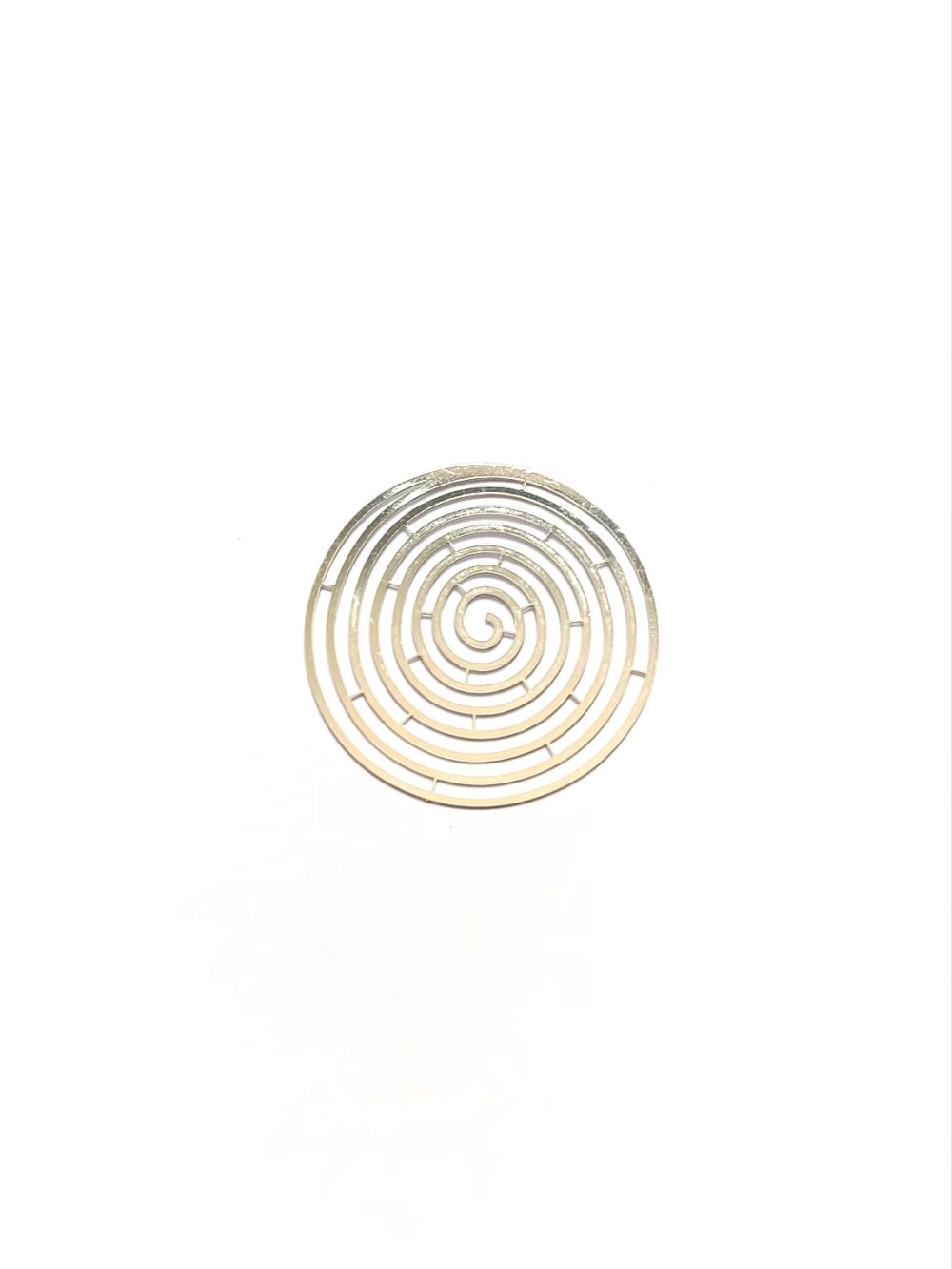 Estampe filigrane ronde, motif spirale, argentée en métal.
