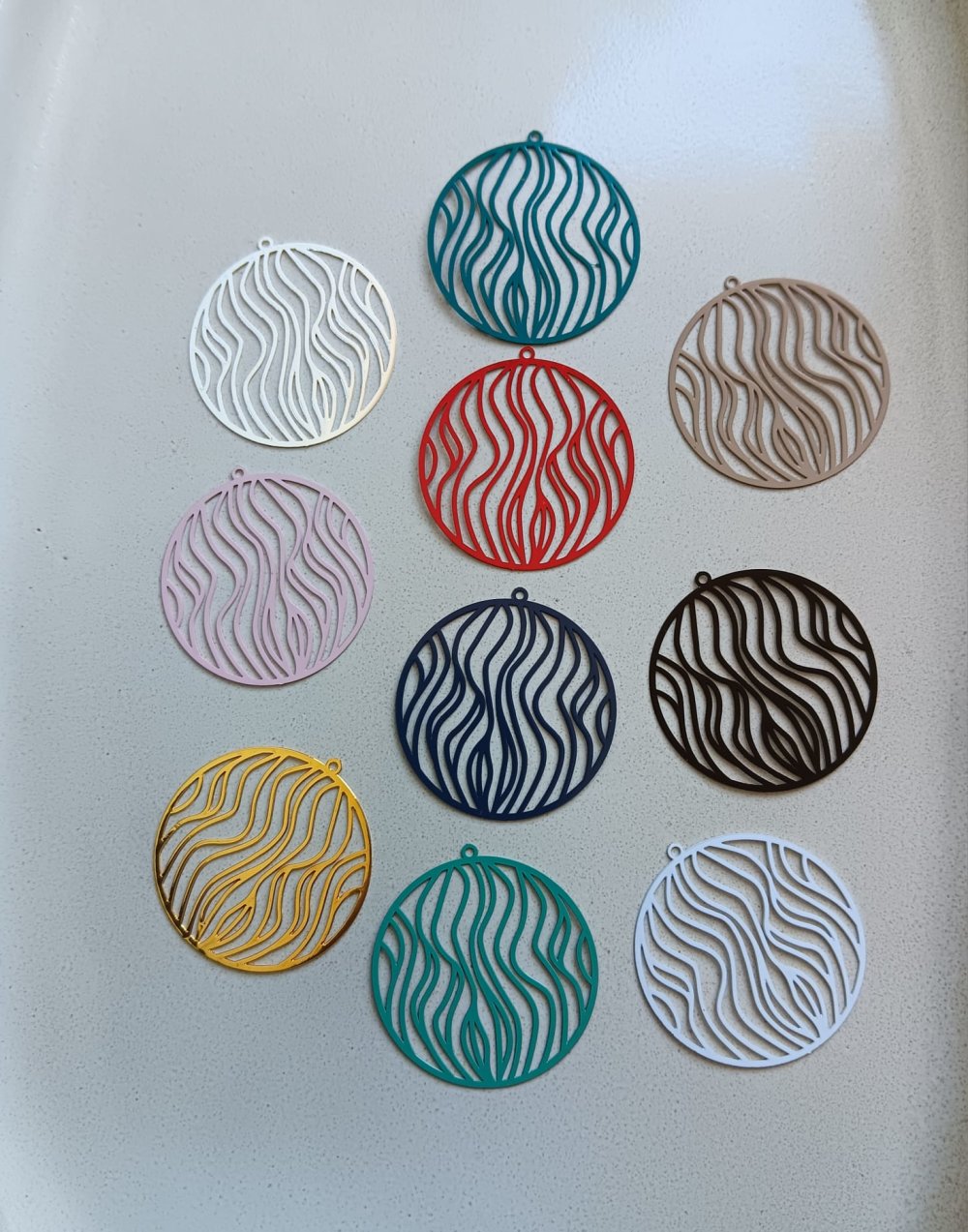 Apportez féminité et douceur à vos créations avec cette estampe filigrane ronde rose de 37x35 mm. Son design délicat et sa teinte tendre en font un élément parfait pour des bijoux raffinés.