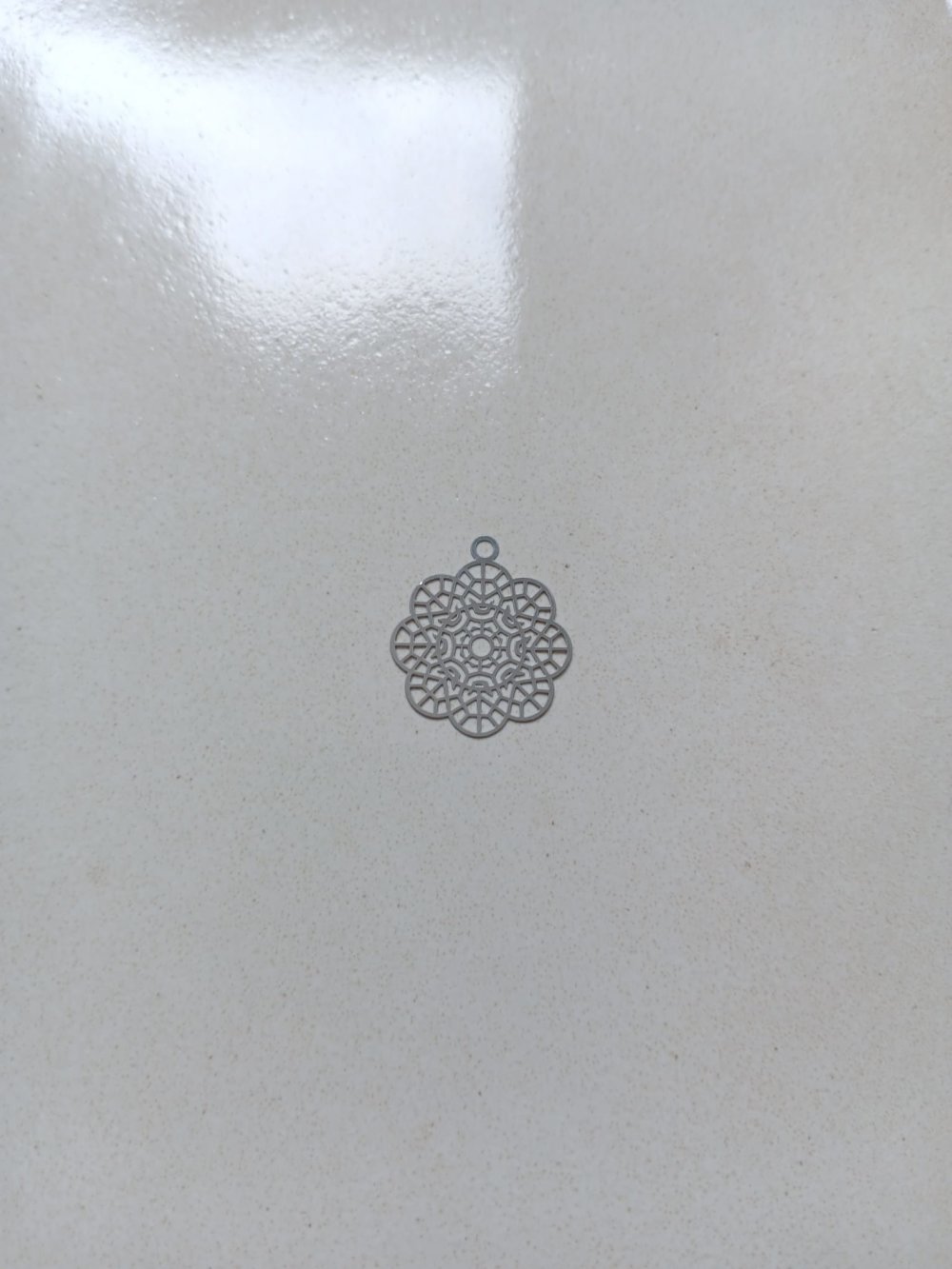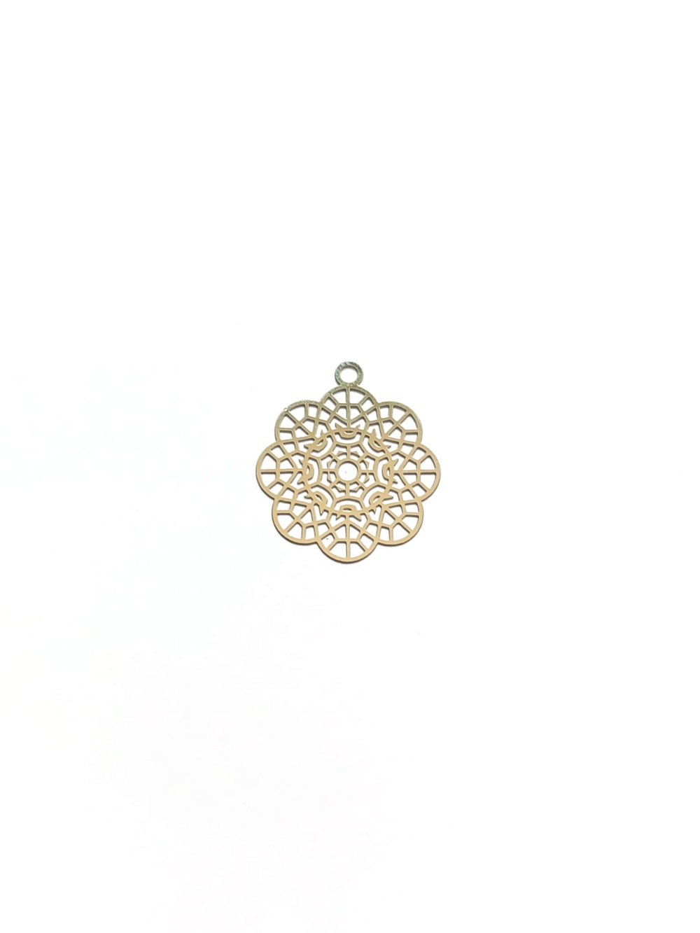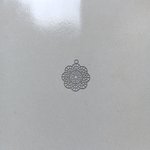 Estampe filigrane rosace argentée en acier inoxydable. Dimensions : 24x21mm