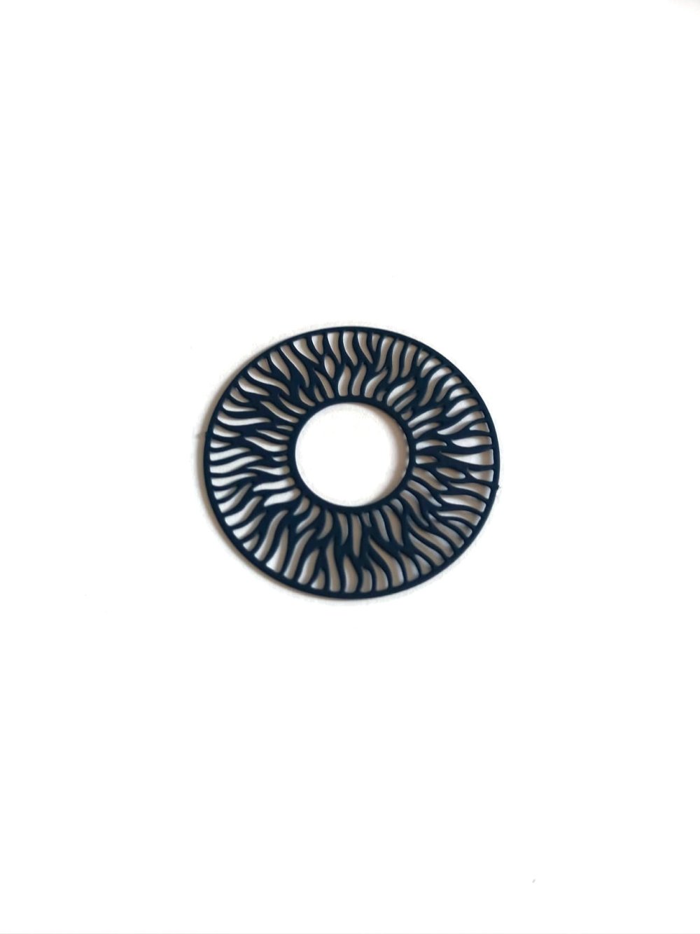 Estampe filigrane rosace bleu marine, base en acier inoxydable. Dimensions : 30mm - A l'unité ou en lot de 10 pièces