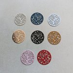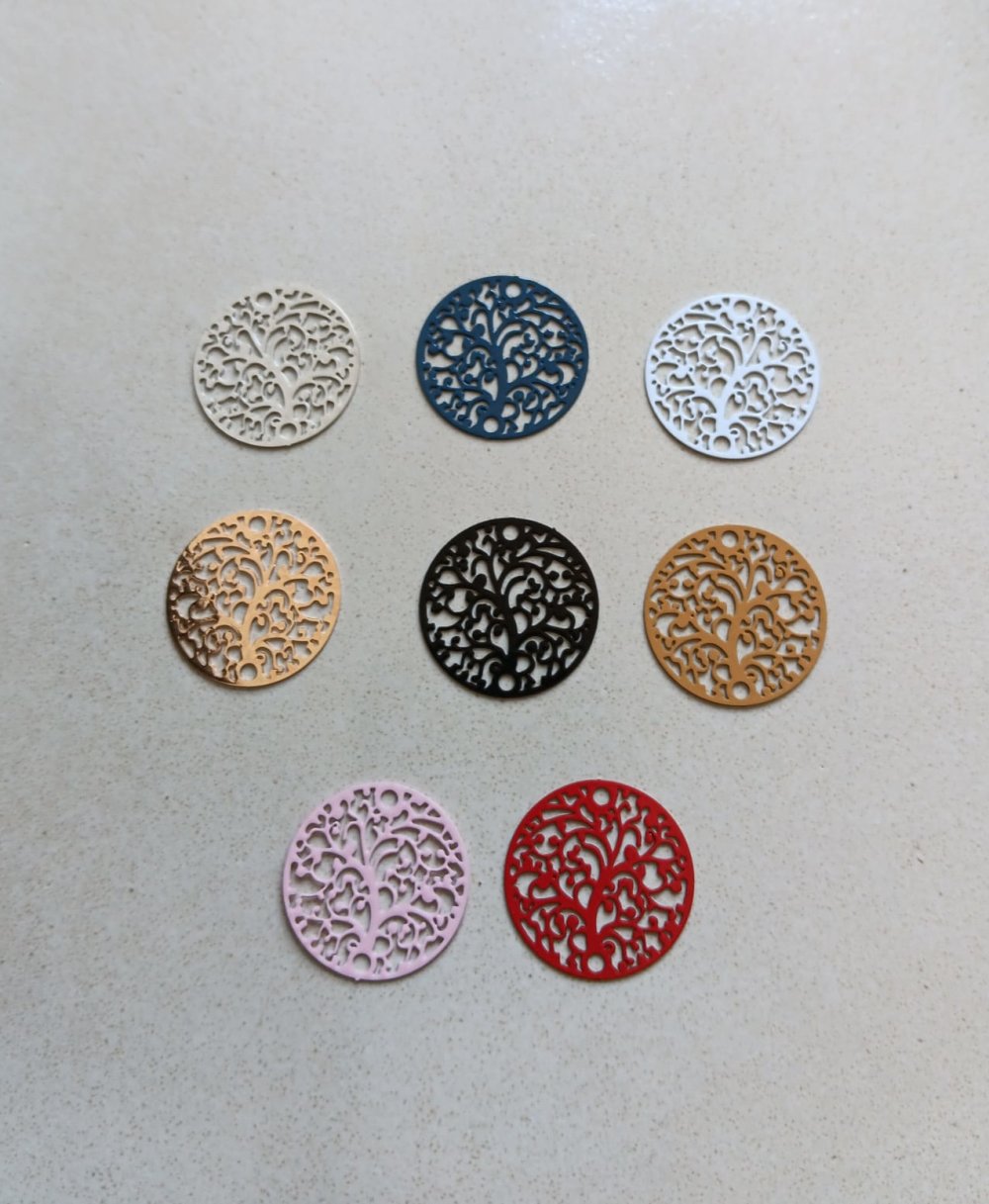 Estampe filigrane intercalaire ronde, arbre de vie, jaune moutarde en métal. Dimensions : 20mm - A l'unité ou en lot de 10 pièces