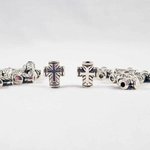 2 Perles Intercalaire en forme de Croix arrondies à motifs sur les deux côtés en Argent Vieilli