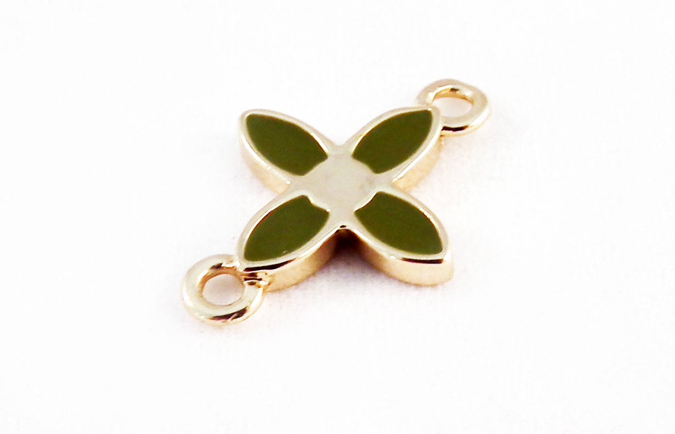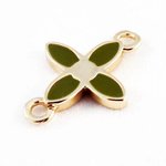 Breloque Pendentif Connecteur Fleur Monogramme Vert Kaki de qualité, de couleur Doré, 2.2cm X 1.5cm, Taille de trou 2mm.