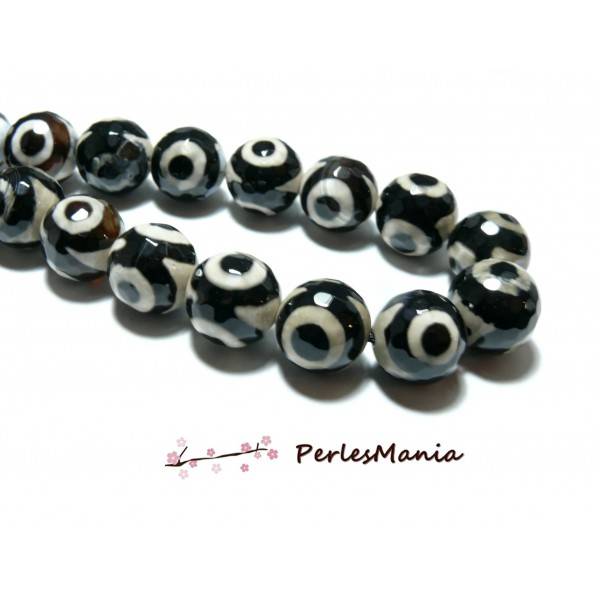 Lot 8 pieces perles Ronde facetée AGATE TIBETAINE 10mm Modèle A, DIY Diamètre: 10mm, trou: 1mm Si vous aimez nos produits, likez la toute nouvelle page Facebook de PERLESMANIA https://www.facebook.com/perlesmania