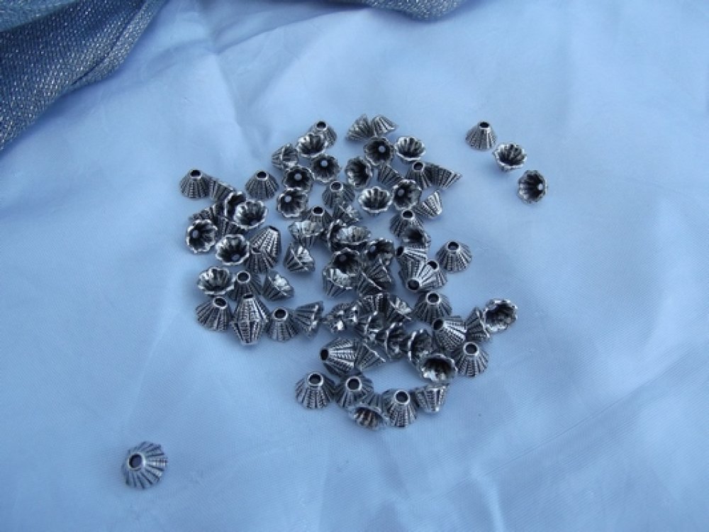 Lot de 10 coupelles calottes cônes 5.3x8mm argent tibétain ciselées trou de 5.1mm