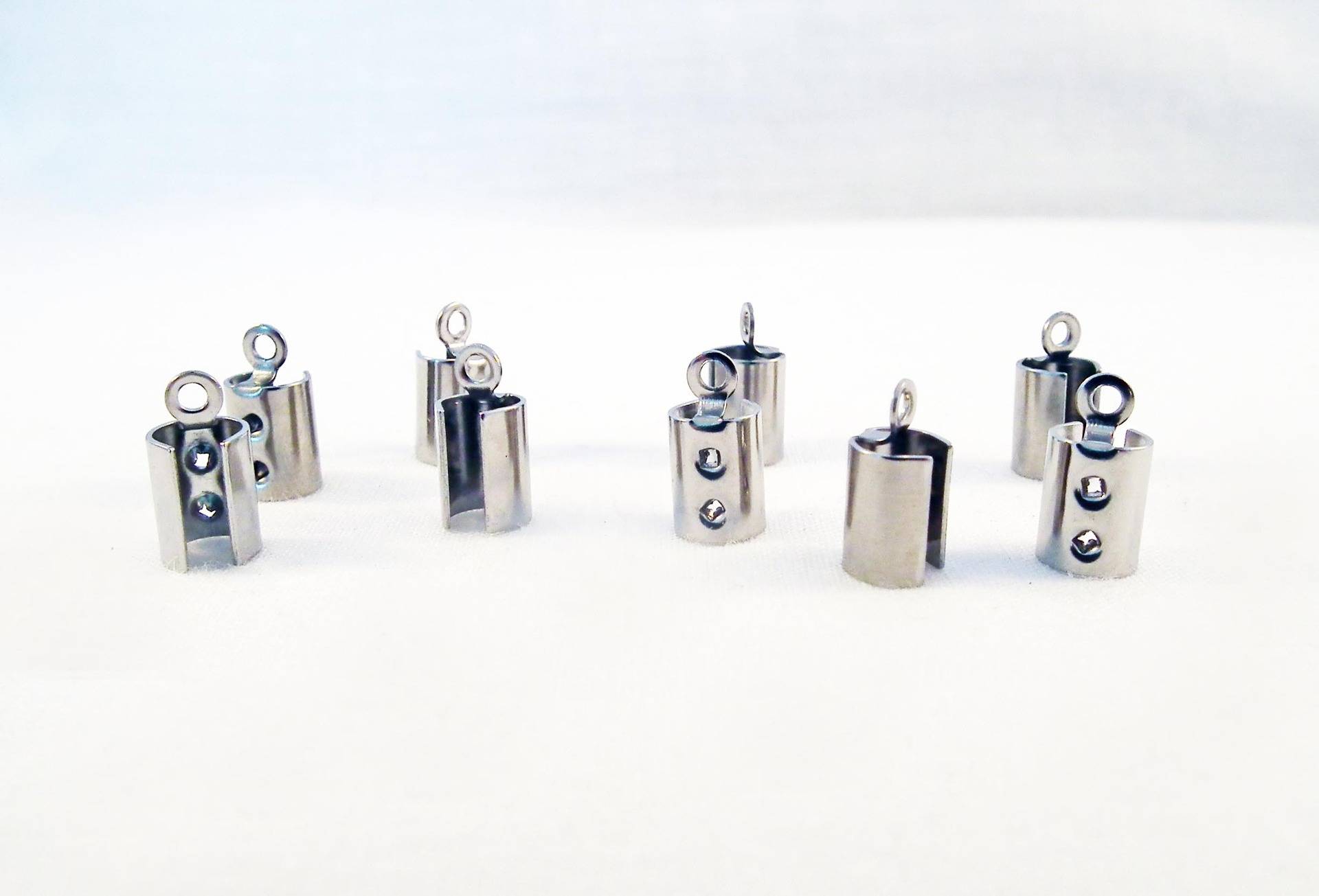 Lot de 10 Embouts à plier coller écraser de 11mm X 5.5mm en Acier Argent Foncé avec deux trous, Épaisseur 5mm.
