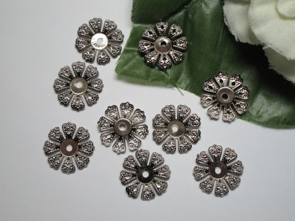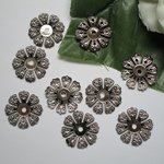 Lot de 10 Fleurs Estampes Filigrane à Coudre Métal Argenté 18.8mm