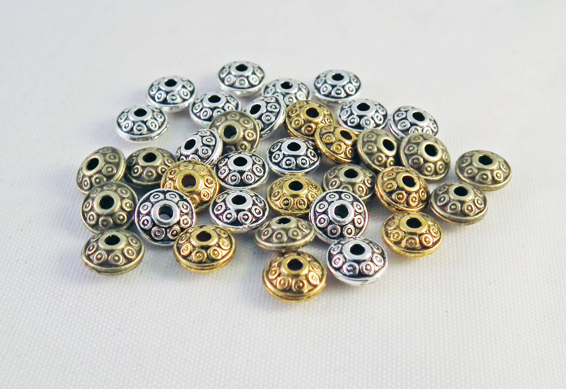 Lot de 10 perles Connecteurs Intercalaires Spacer style Rétro de couleurs Mixtes, 6,5mm de diamètre, Taille de trou 1,2mm.