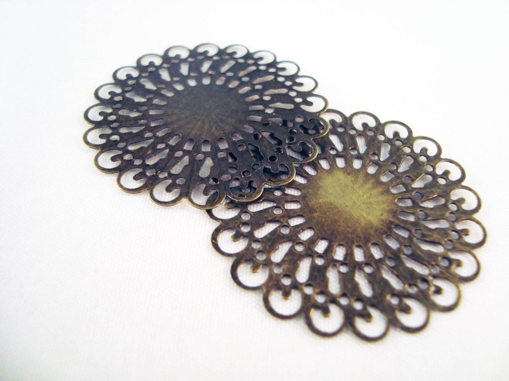 Lot de 2 Connecteurs Ronds Fleurs Soleil Bronze 35mm de diamètre.
