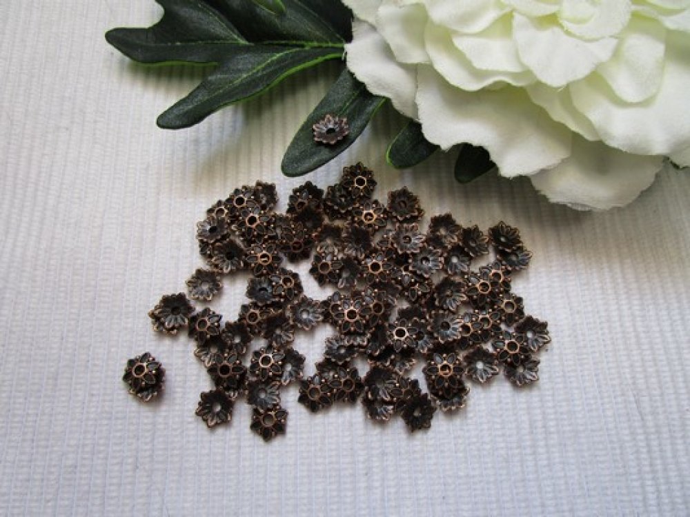 Lot de 20 coupelles fleurs 8.3mm cuivre rouge pour perle de 6 à 8mm