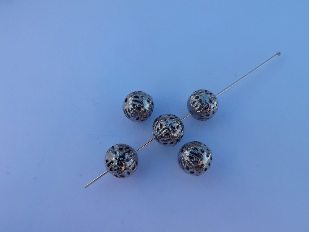 Lot de 20 perles filigranées intercalaires rondes de 10 mm en plaqué argent vieilli.
