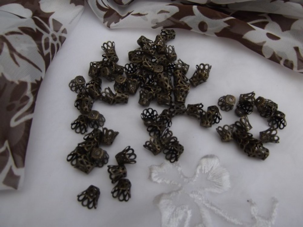 Lot de 25 coupelles clochette panier 8x6.5mm filigrane bronze pour perle de 7/6mm
