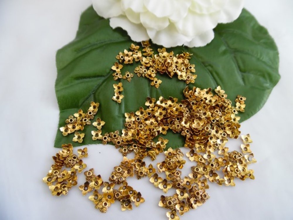 Lot de 30 coupelles fleurs 7x2mm cuivre doré pour perle de 5/6/7mm