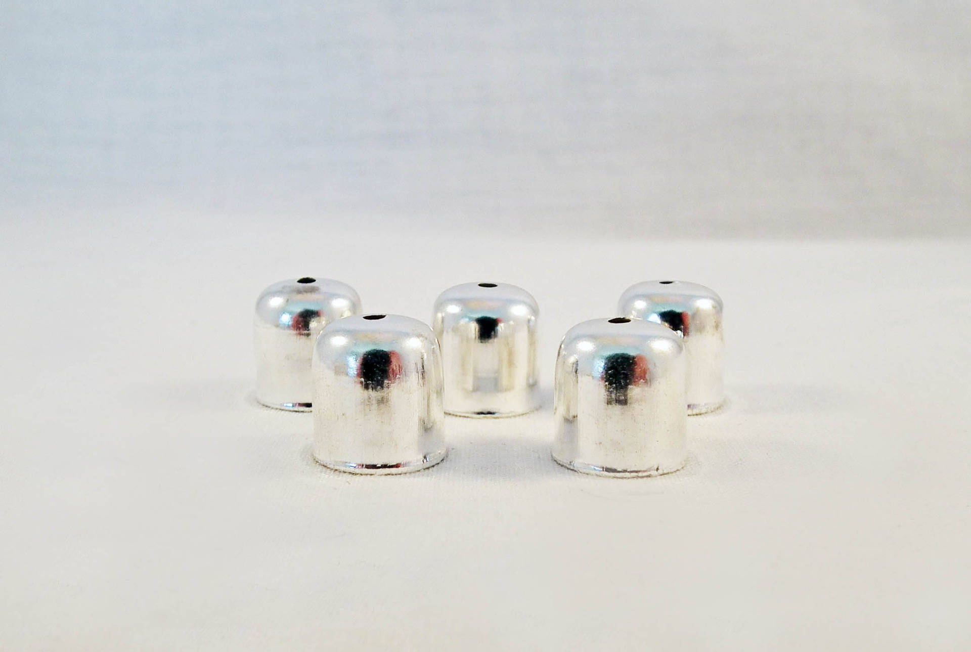 Lot de 5 Embouts à coller de 11mm X 10mm Argent Brillant, Diamètre intérieur 9mm.