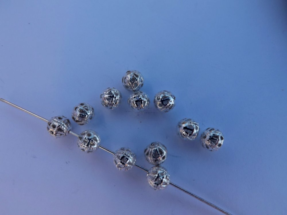 Lot de 98 perles filigranées rondes de 6 mm plaqué argent.