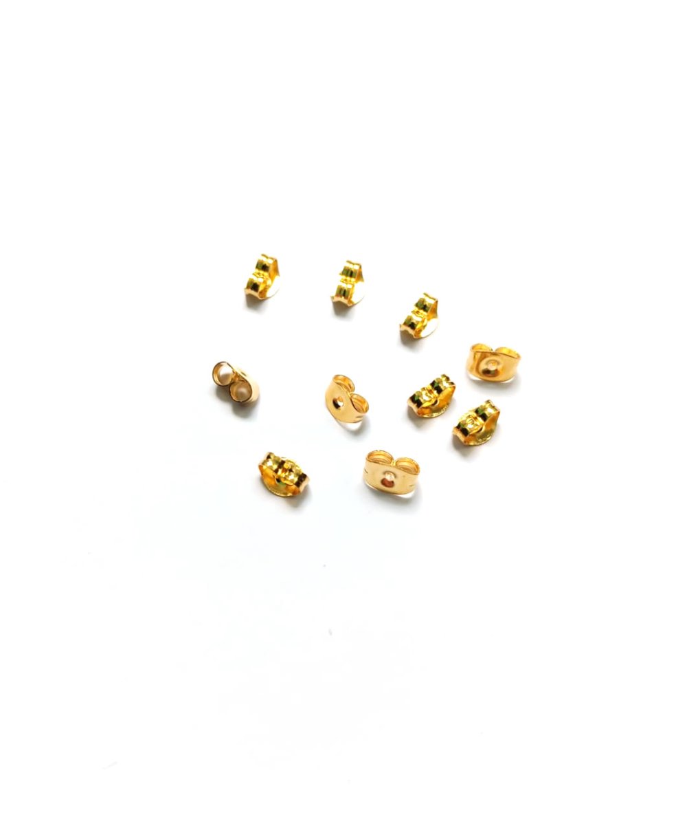 Donnez à vos créations de boucles d'oreilles une finition soignée et fiable grâce à ces poussoirs en acier inoxydable doré. Indispensables pour assurer un bon maintien des clous, ils allient résistance, légèreté et esthétique dorée pour sublimer tous vos bijoux.