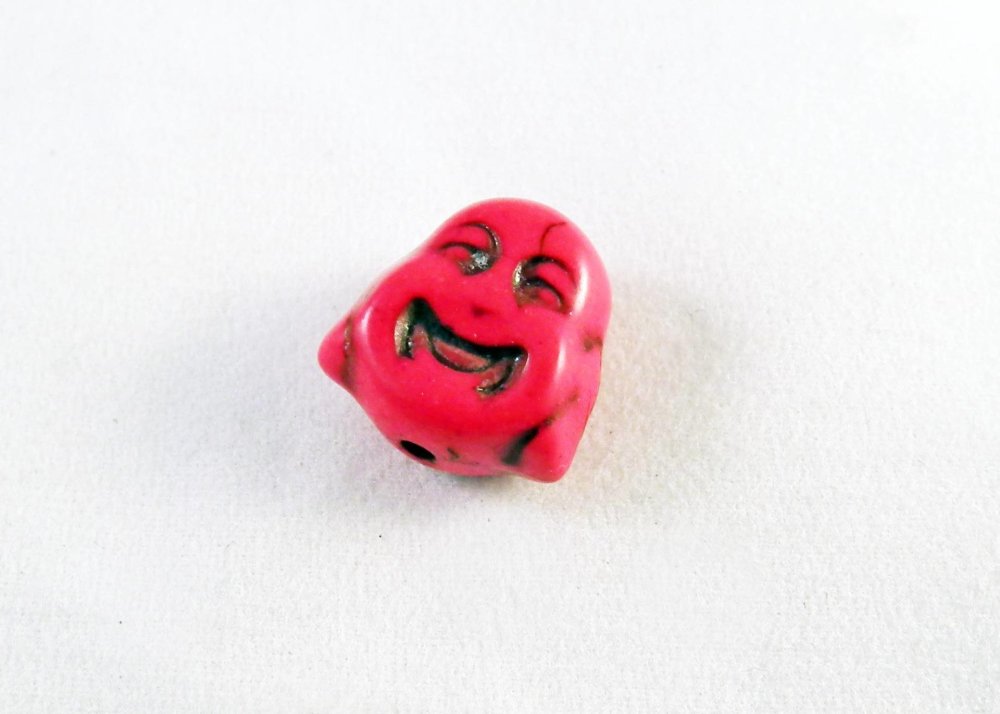 Magnifique Breloque Pendentif Connecteur Howlite Buddha Zen Happy Rouge, 15mm X 12mm.