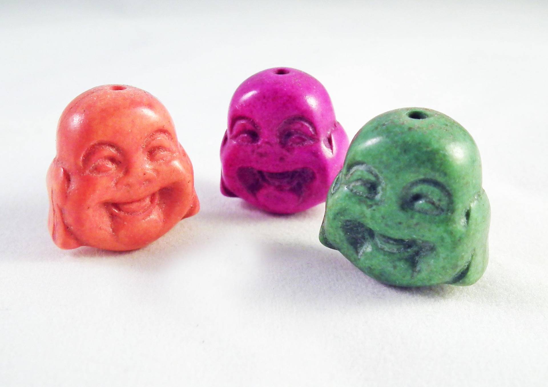 Magnifique lot de 3 Grandes Breloques Pendentifs Connecteurs Howlite Buddha Zen Happy 2cm de couleurs Mixtes