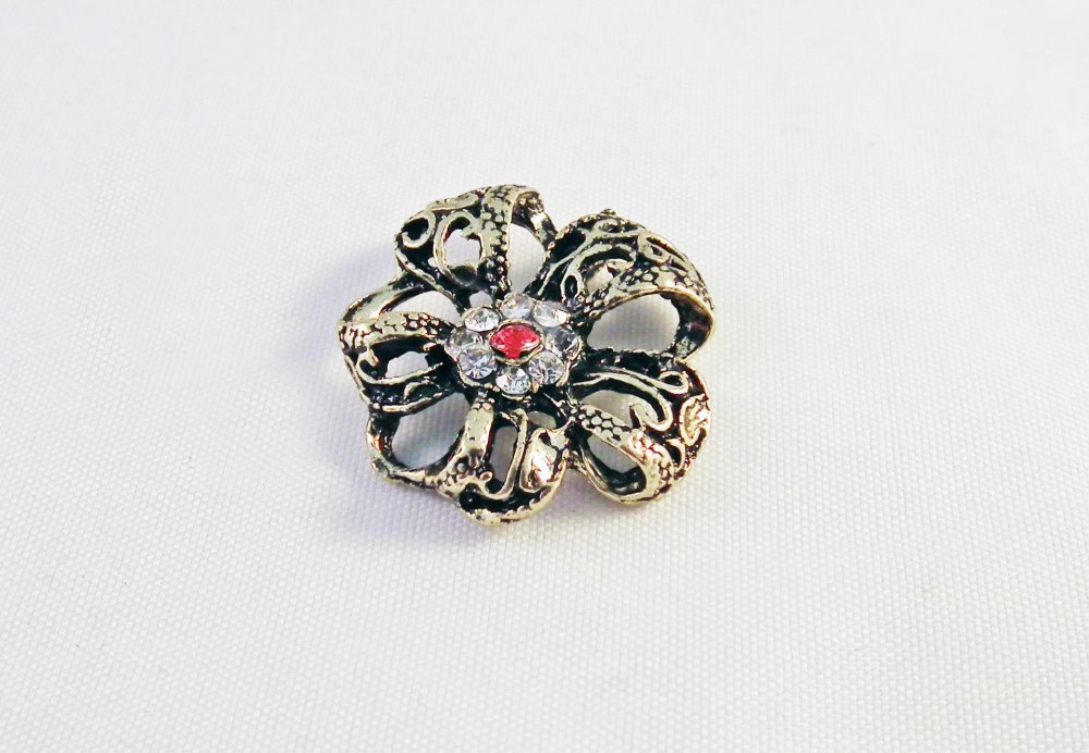 Magnifique Pendentif Breloque Connecteur Vintage Fleur Cristal Strass Rouge Blanc, Bronze