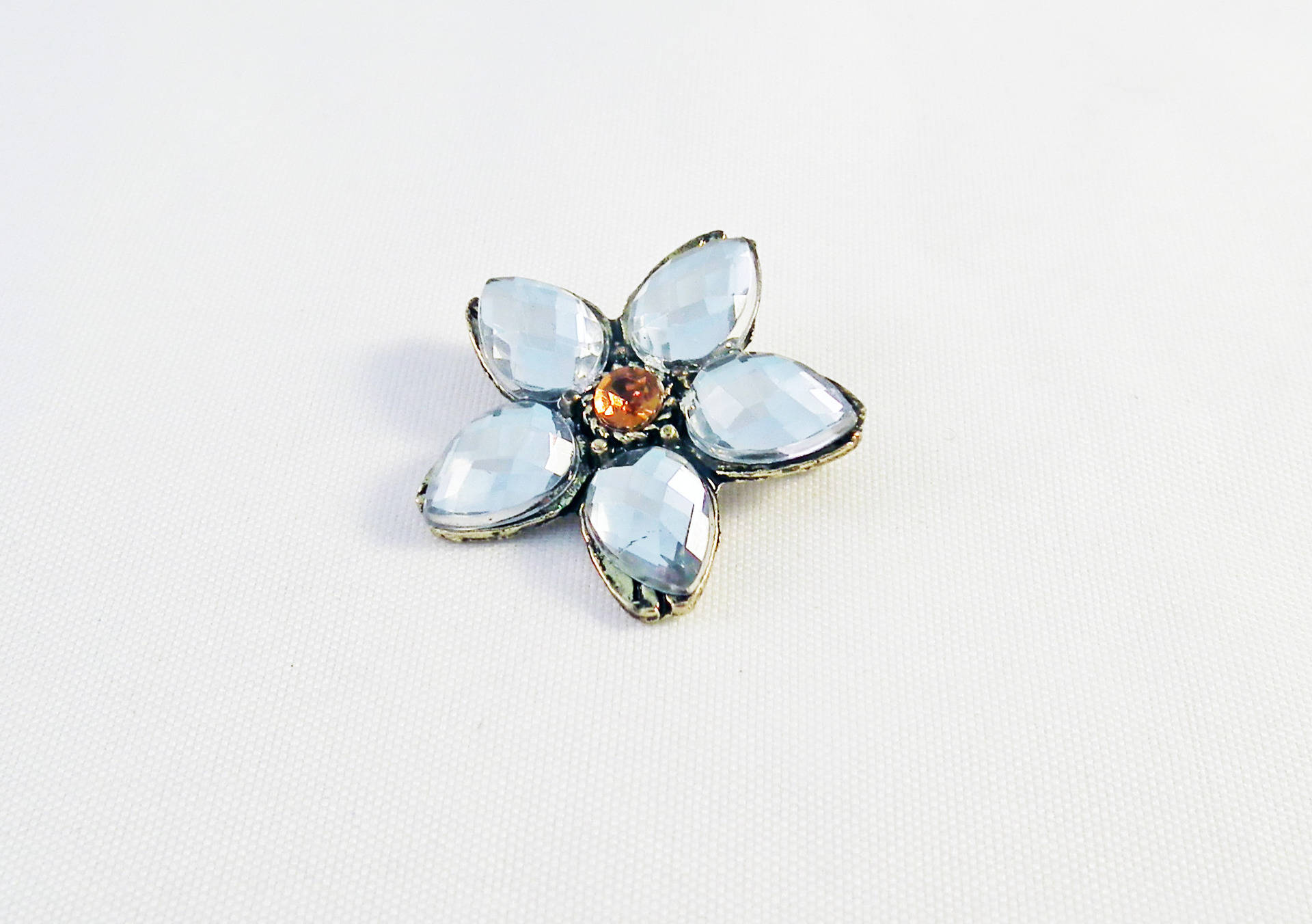 Magnifique Pendentif Breloque Connecteur Vintage Fleur Cristal Orange et Blanc Bronze.