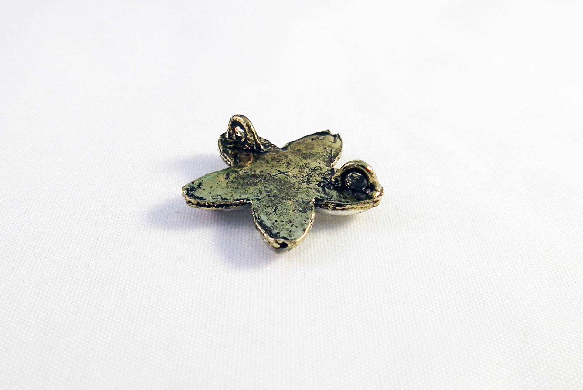 Magnifique Pendentif Breloque Connecteur Vintage Fleur Cristal Orange et Blanc Bronze