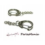 PAX 20 PORTE CLES, PORTE CLEFS 25mm metal couleur ARGENT PLATINE AVEC CHAINE S1151871 Apprêt garanti sans nickel