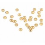PS110210545 PAX 10 Perles Intercalaires, Rondelles 3 mm, Cuivre Plaqué Or 18KT Dimension: environ:3mm . Hole Size, Trou: environ 1.1mm Thickness, Epaisseur: environ 1.5mm Matériaux: laiton Perles intercalaires pour création de bijoux garanti sans nickel, sans plomb et sans cadmium