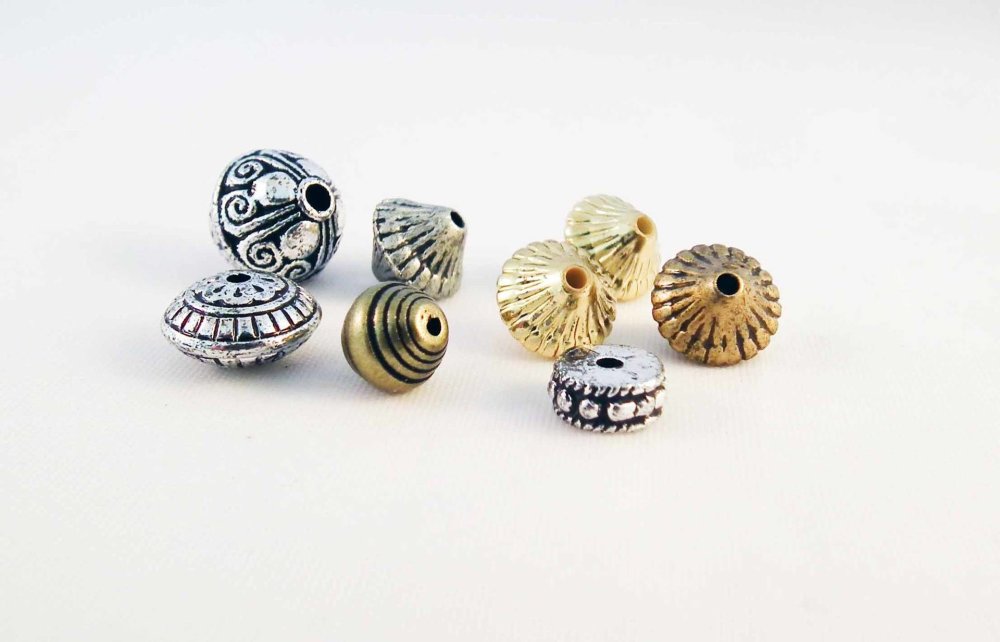 Superbe lot de 8 perles Connecteurs Intercalaires Spacer style Rétro de couleurs Mixtes Argent Bronze Doré, 6-12mm.