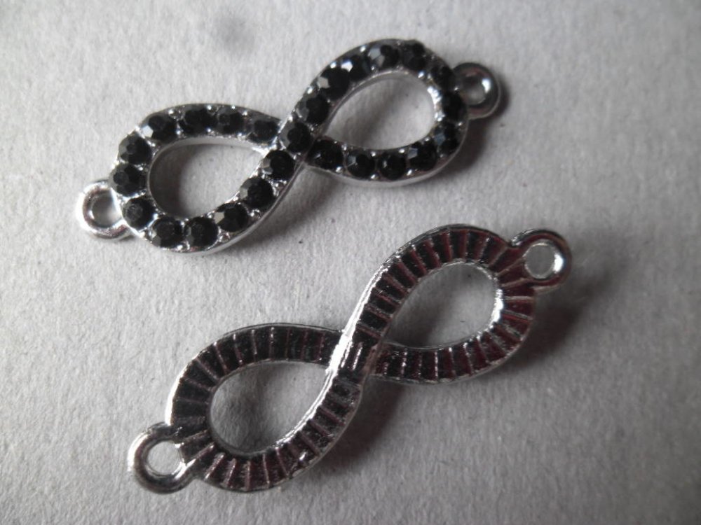 x 1 connecteur signe de l'infini cristal strass noir argenté