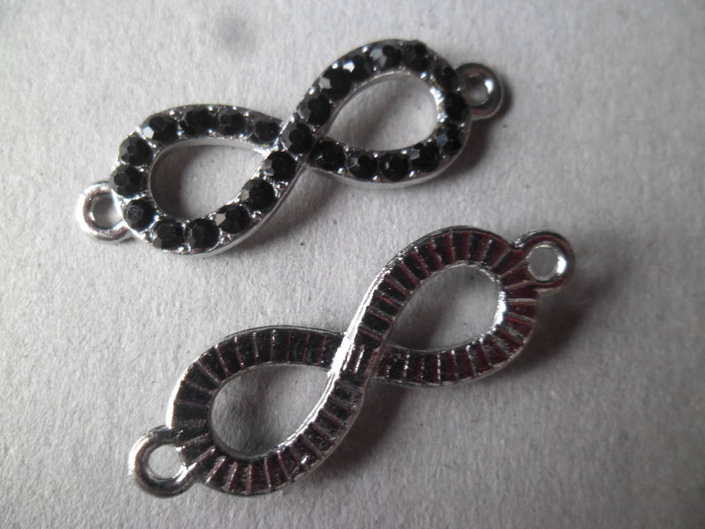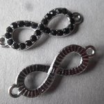 ce très beau connecteur en forme de sigle de l'infini cristal strass de couleur noir en métal couleur argenté.