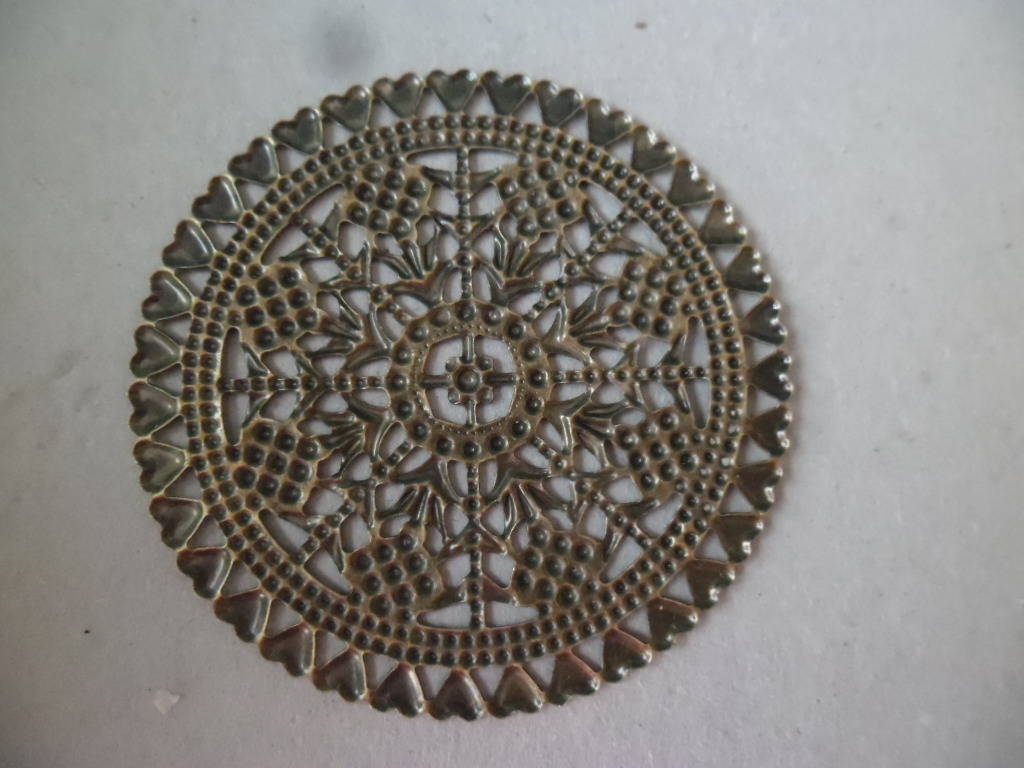 ce très beau lot de 2 grands connecteurs filigrané motif fleur contour avec des petits cœurs couleur bronze.