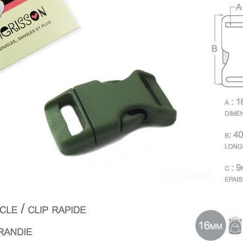 1 x 16mm Boucle Attache Rapide / Fermoir Clip / Plastique / Vert Millitaire / Simple
