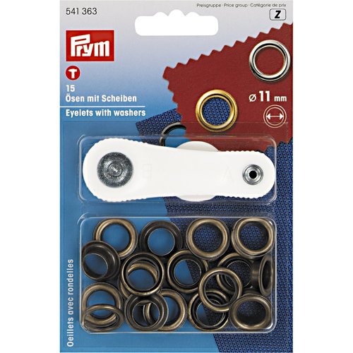 Lot de 15 œillets argentés avec rondelles + outil, diamètre 11 mm - Prym